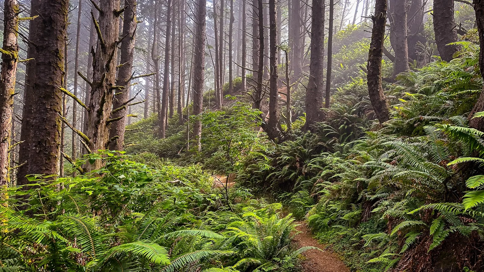 A section of the Pacific Coast Trail as it cuts through a stand of trees on the Oregon Coast in the Samuel H. Boardman State Scenic Corridor. (Brian Gailey)