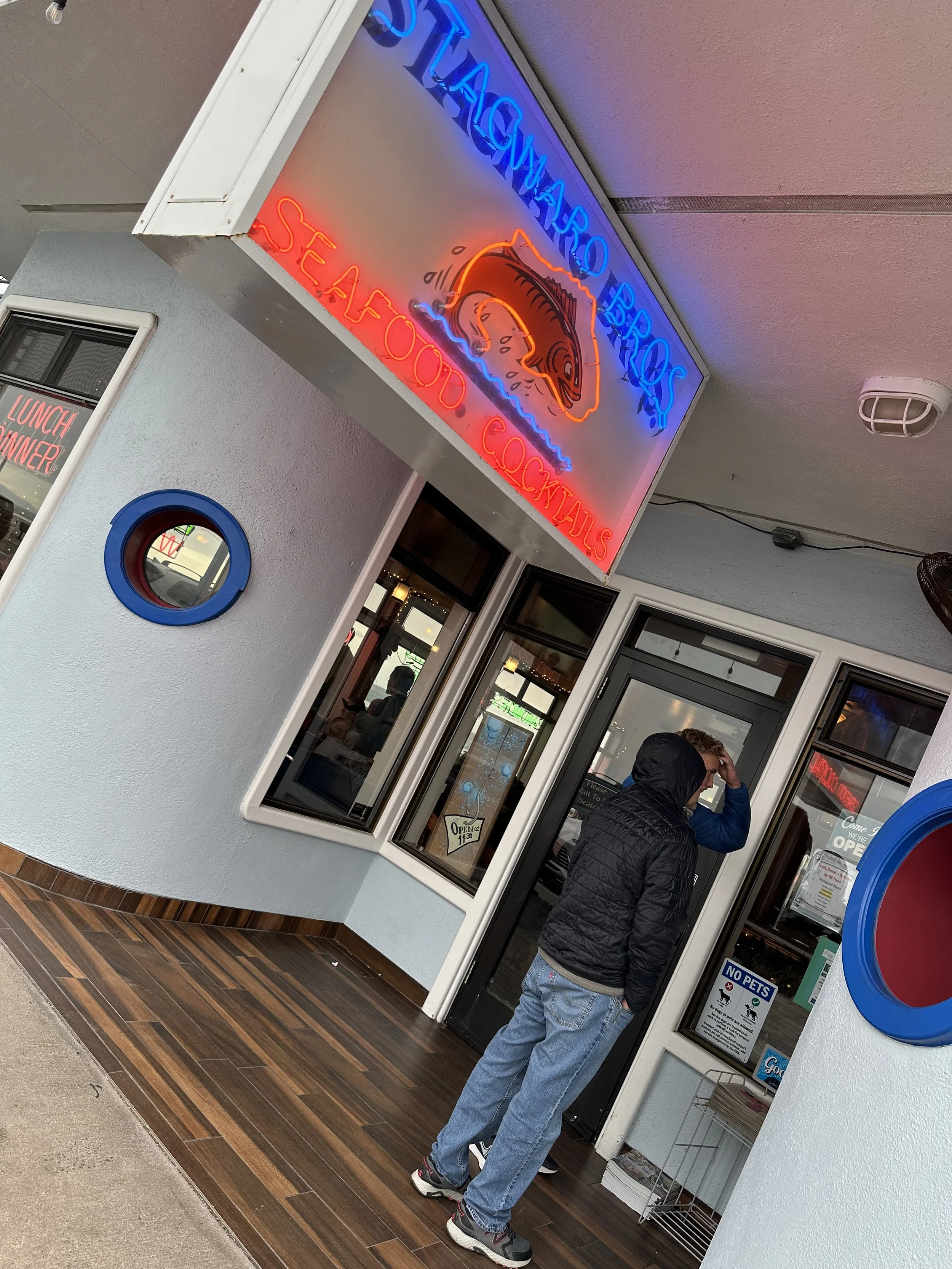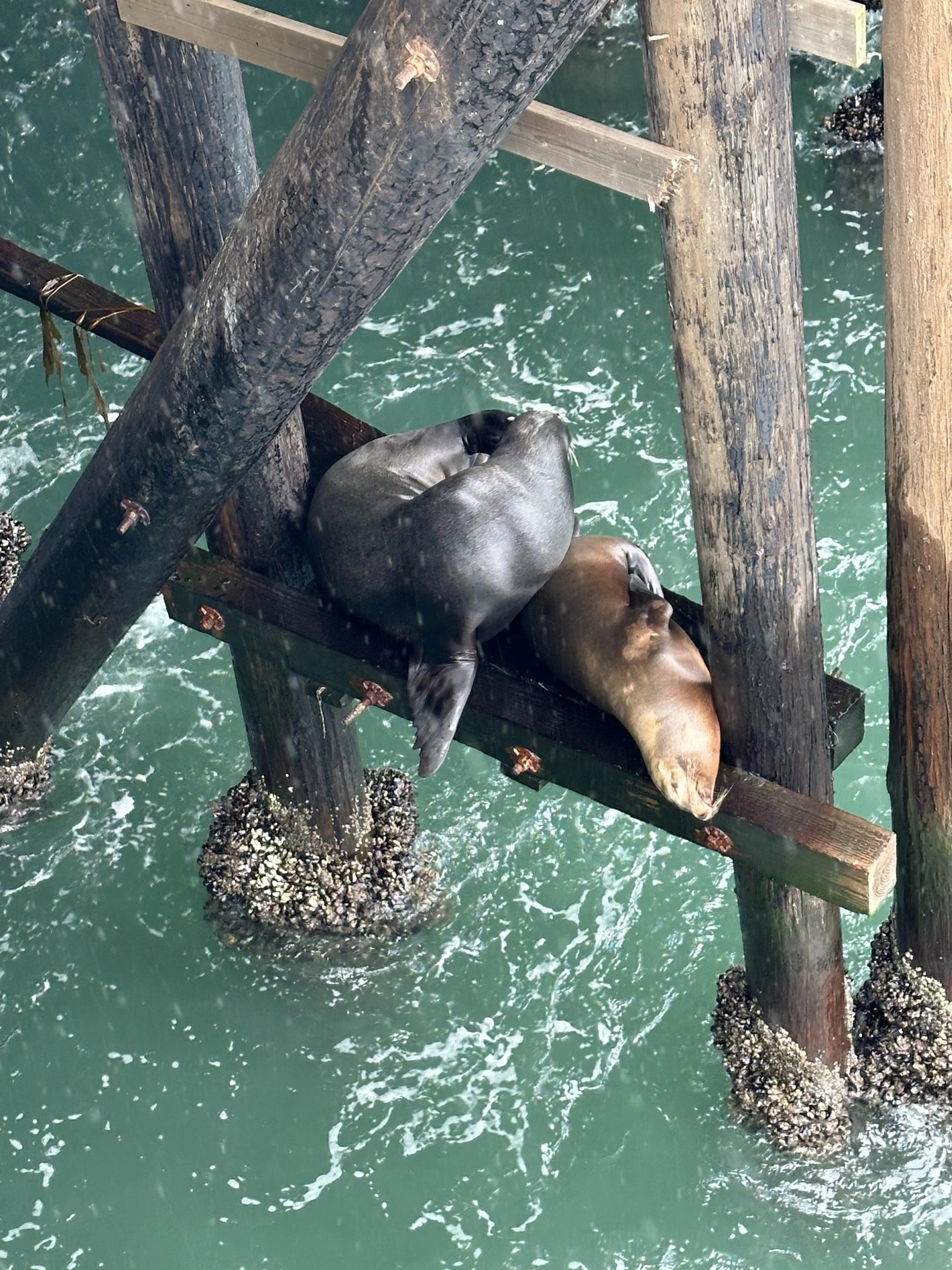 Despite the weather, I decided to brave the elements and took a walk along the pier. I visited some of my favorite spots, including Bonnie’s Gifts, and enjoyed the sights, sounds, and smells of the sea lions nearby. As a bonus, I was thrilled to spot a porpoise coming up for air near the pier—what a treat!