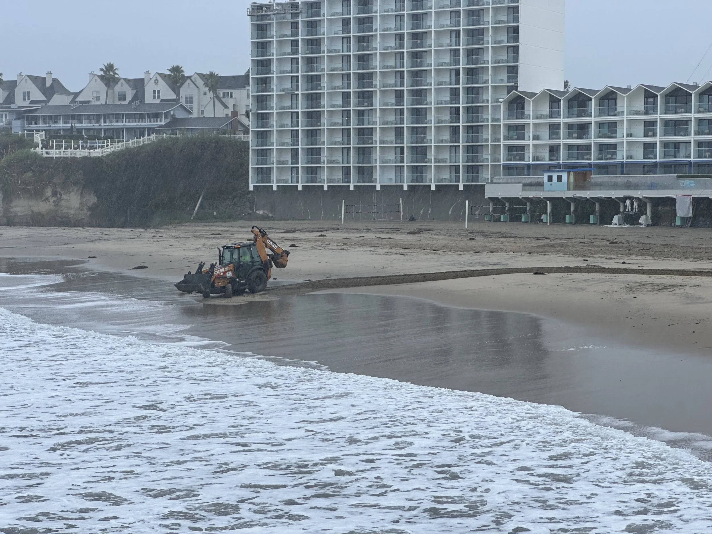 By the way, you know the storm was crazy when the city used a backhoe to dig a storm drain runoff channel in the sand to the sea.